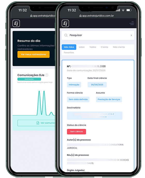 Um serviço de rastreamento do Domicílio Judicial Eletrônico (DJe). Nossos robôs fazem diariamente uma varredura no DJe da pessoa, advogado ou empresa cadastrada na plataforma em busca de novos processos protocolados na justiça e também das novas comunicações judiciais que foram disponibilizadas. Quando detectado, você é notificado via plataforma e e-mail.